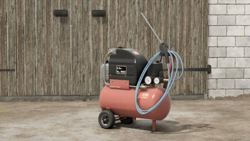 This simple, stationary air compressor is an essential item for any farm. You can purchase it in the store under 'Misc' or place it via Building -> Tools.