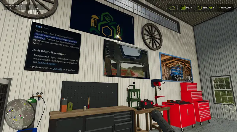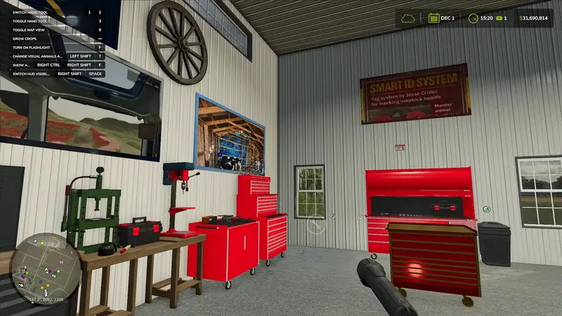 The American Midwest Shed House, originally by ikas and custom edited by Jessie Crider, is a versatile building mod that enhances your gaming experience. This custom version includes updated interior posters and texture edits while maintaining the original functionality. You can sleep, change your look, repaint, repair, and customize vehicles. The building features interior lighting and automatic exterior lighting. In the work area, you can store crops, machines, pallets, and Big Bags on shelves, and repair, repaint, customize, or sell vehicles. The workshop walls allow for customization of flags and brand posters. The living area includes an open kitchen with a living room, wardrobe, toilet, bedroom, and office where you can change your outfit and sleep. Additionally, the office PC lets you choose the colorway of the building trim.