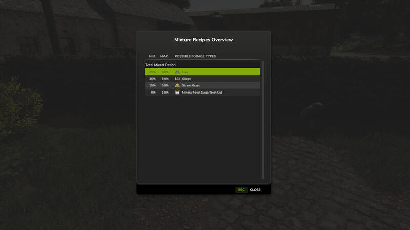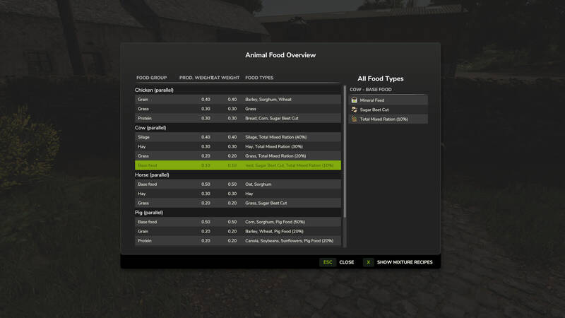 Customize animal food with this mod! Adjust the consumption ratios (eatWeight) and production coefficients (productionWeight) in the animalicFood.xml file. The TotalMixRatio is now considered a 'real' , filling the individual feed categories according to the .
