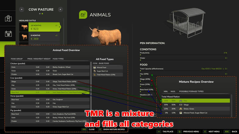 Screenshots were created using the FS25_AnimalFoodOverview mod by Fetty42 for better understanding.