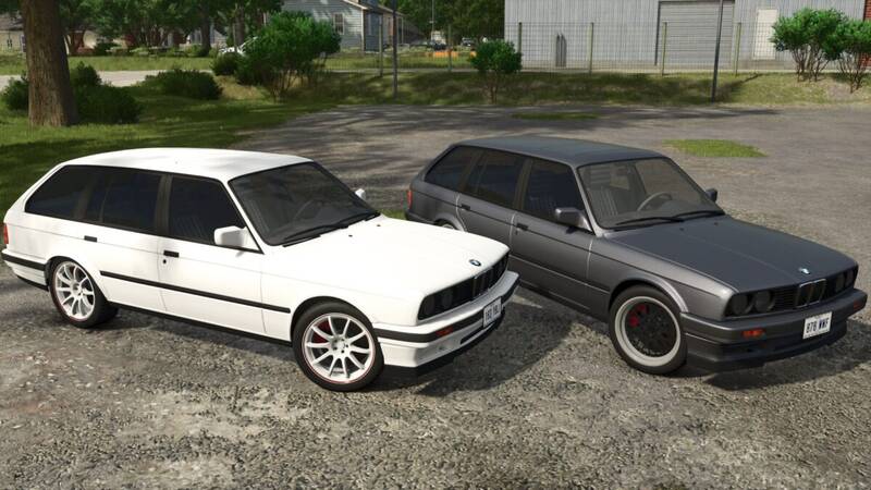 Experience the classic BMW E30 Touring with a power of 200 hp and a top speed of 180 km/h. Available for just €7800, customize your ride with selectable body and rim colors, rims, and trailer hitch. Enjoy additional features like window tint and license plate configuration. The vehicle comes with an animated dashboard, functional turn switches, pedals, and wipers, along with passenger support.