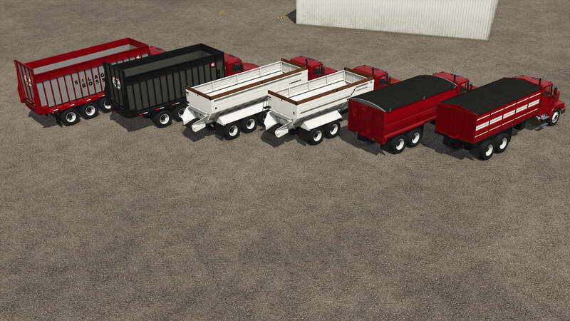 The Bulk Truck Bed Pack features 7 versatile boxes designed for transporting various commodities. Compatible with X2 or X3 attachers, these beds can be used on pup trailers included in the mod or attached to trucks like the Volvo WIA by Bcbuhler or the International Transtar by Shultz Modding.