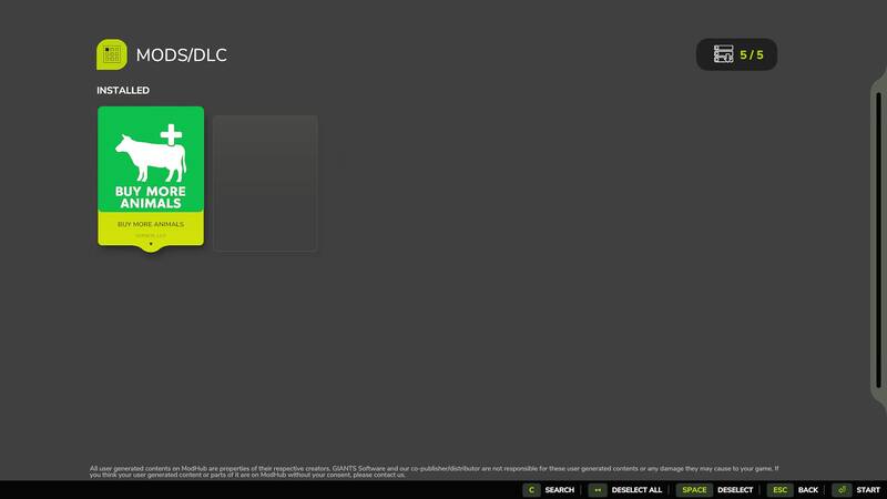removes the default limit on how many animals you can purchase at once in Farming Simulator 25.