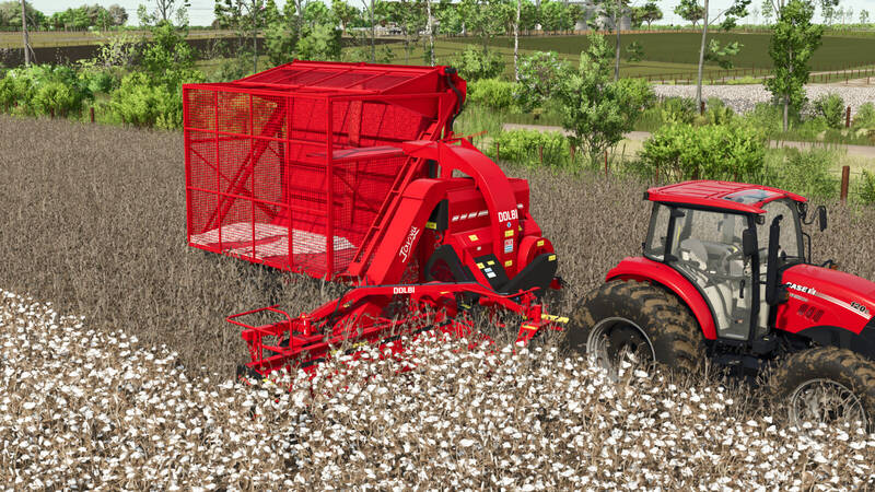 The Dolbi Javiyu Pack includes a compact cotton harvester and a compatible side dump trailer, ideal for small to medium-sized farms or contractors.