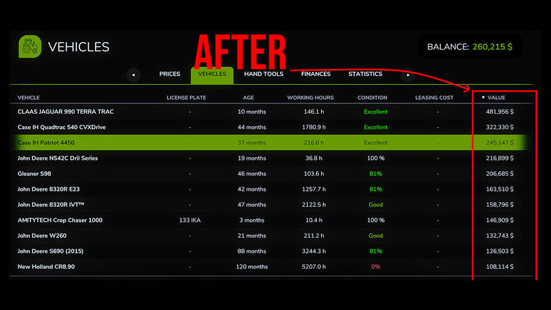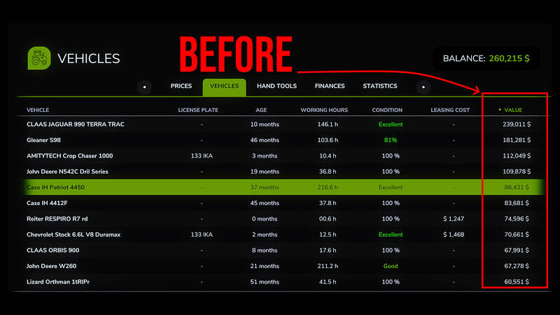Experience realistic farm equipment resale values with Iron Depreciation, a mod that introduces an alternative vehicle value system based on real agricultural economics data. Using sources like the USDA, Iowa State Extension Service, and Machinery Pete auction records, this mod provides resale values that closely follow real-world depreciation curves.