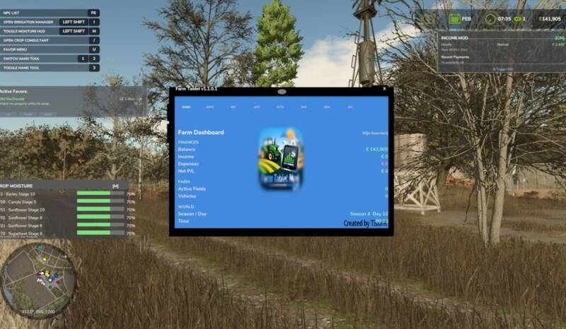 Welcome to the Farm Tablet mod, now converted and optimized for Farming Simulator 25. Originally inspired by a tablet concept for FS17, this mod has been reimagined and rebuilt for FS22, and now FS25. While still a work in progress, the mod is stable and functional, designed to be a compact, all-in-one tool providing useful information without interrupting gameplay.