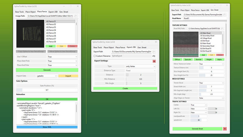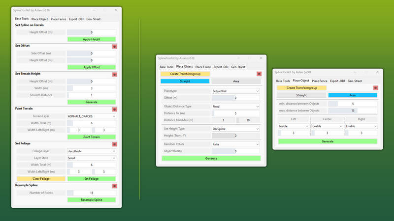 The SplineToolkit is a comprehensive GIANTS Editor script that consolidates a wide range of spline-related tools into one package. Almost all functions offer a real-time preview directly in the editor viewport.