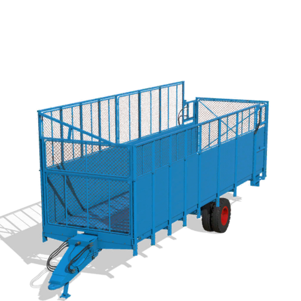 The HTS package includes the HTS 50.04-2 Large Volume Trailer, perfect for transporting grass, hay, straw, chaff, silage, mixed rations, and sugar cane. This trailer can be filled at a farm silo or with suitable harvesting machines like forage harvesters. Additionally, the HTS 50.04 is designed for transporting small high-pressure bales. These bales can be unloaded to the rear like bulk goods. Note that the bale trailer does not have an autoloading function; bales are loaded into the trailer by a suitable baler with a chute while driving alongside it.