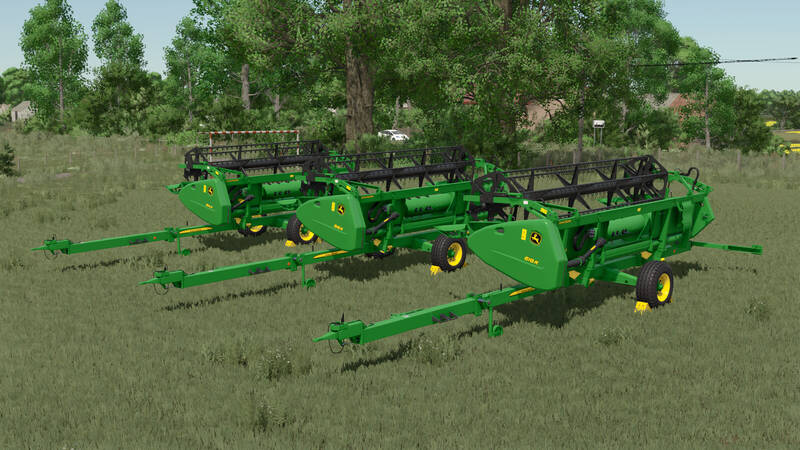 John Deere 618R Category: Grain Headers Price: $43,000 Working Width: 5.49m Working Speed: 10 kph John Deere 616R Category: Grain Headers Price: $37,000 Working Width: 4.88m Working Speed: 10 kph John Deere 614R Category: Grain Headers Price: $30,000 Working Width: 4.27m Working Speed: 10 kph John Deere SWW Series Trailer Category: Header Trailers Price: $7,450 Configurable Length for 614R, 616R, and 618R