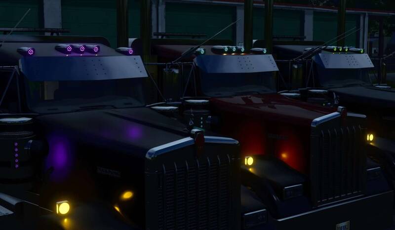 - Customizable license plates, decals, bumper lights, oversize sign, LED colors, wheel caps, fenders, and tag axle