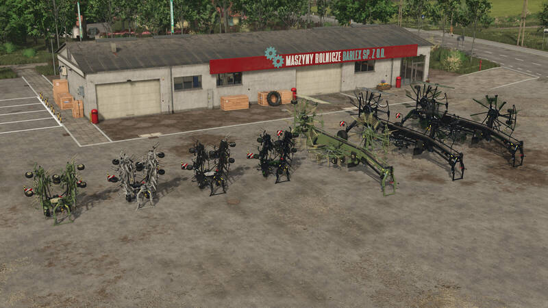 - Krone Vendro 820 Highland – A high-performance tedder with a working width of 8.2 meters. Features include color options, improved folding animation, and optional road lighting.
