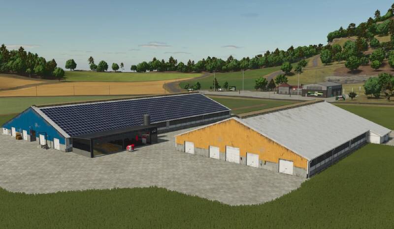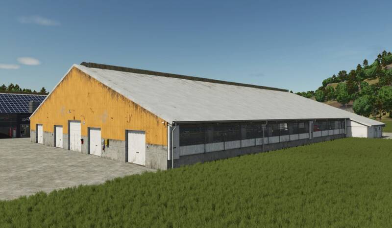 Enhance your dairy farm with the pack, featuring 8 placeable buildings in total. Choose between two barn sizes, each available with or without an outdoor pasture, and with optional feeding robots.