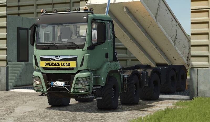 The is a powerful and reliable truck designed for transporting heavy loads on farms and construction sites. With its 500 hp engine and 49,000-liter tipper capacity, it handles bulk materials like silage, grain, and soil with ease.