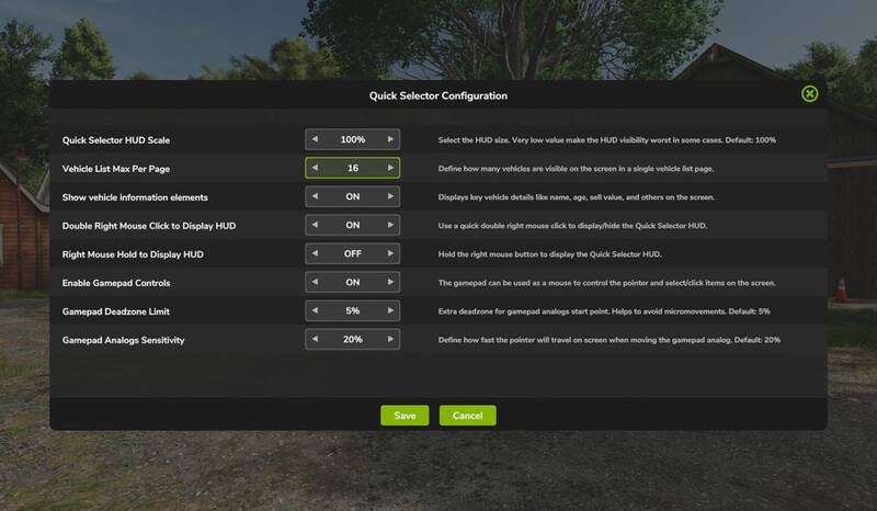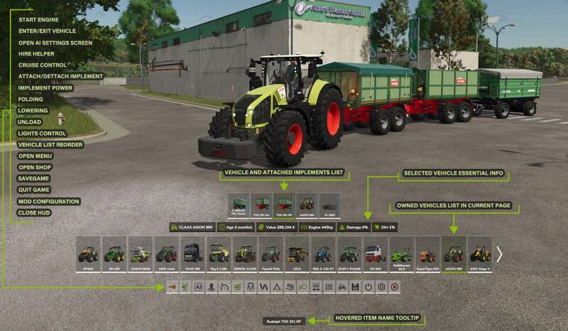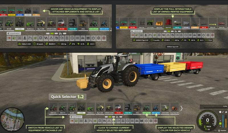 is a powerful and intuitive interface enhancement that improves your gameplay experience by providing fast access to your vehicles and implements.