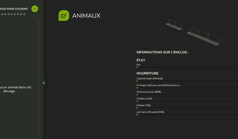 This script replaces the default animal feed system with a carefully researched and realistic nutrition model. It supports feeding animals with a variety of ingredients such as silage, grass, hay, straw, cereals (corn, wheat, barley, rye, spelt), tubers (potatoes, beets, carrots, parsnips), rice, and minerals.