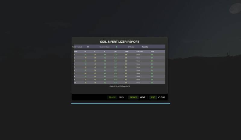 - Dynamic Soil Fertility: Tracks nitrogen, phosphorus, and potassium levels for each field. Soil nutrients deplete as crops grow and recover when fields are fallow.