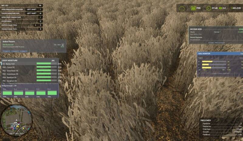 - User-Friendly Interface: Integrated into game settings menu, console commands for advanced control, real-time notifications for low nutrients, field-specific soil information.