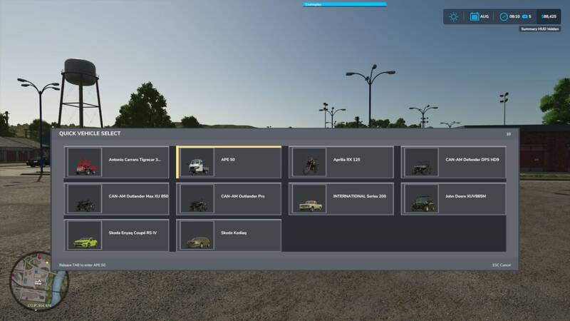 - Hold TAB to open the vehicle selector