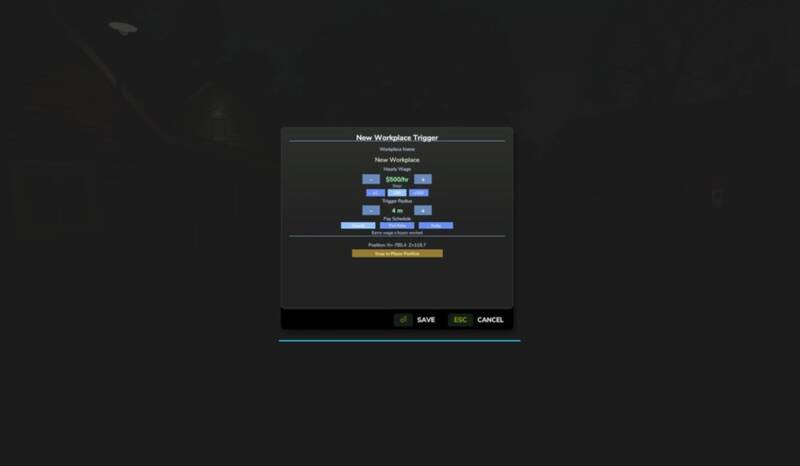 Transform any location on any map into a legitimate workplace! Use the Workplace Manager to add a trigger, assign it a name and wage, and place it anywhere on the map. Perfect for roleplayers who want their farmer to have a side job, or for anyone looking to supplement farm income with off-farm work.
